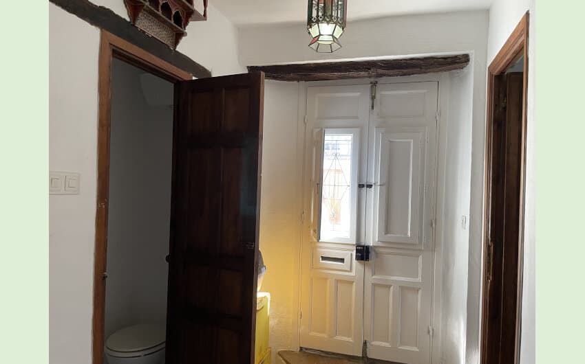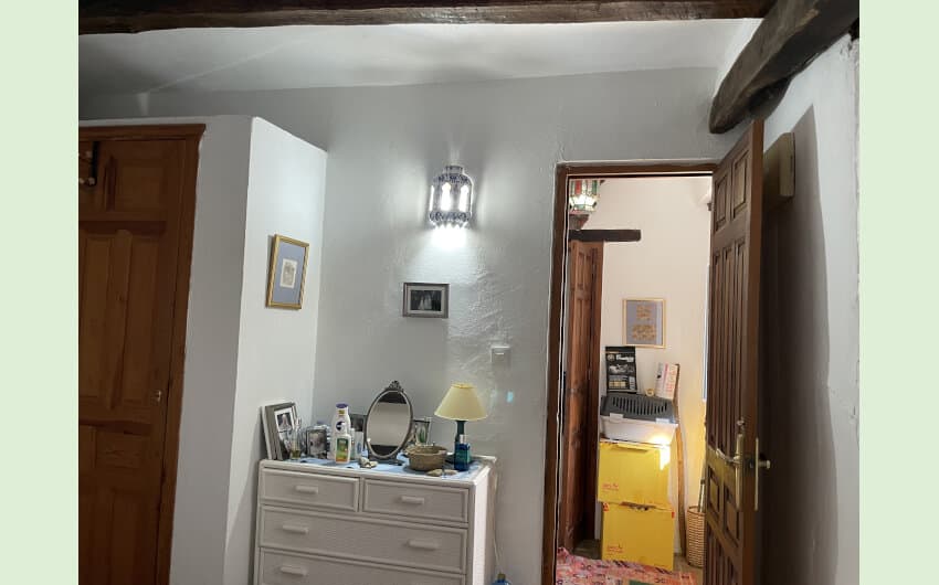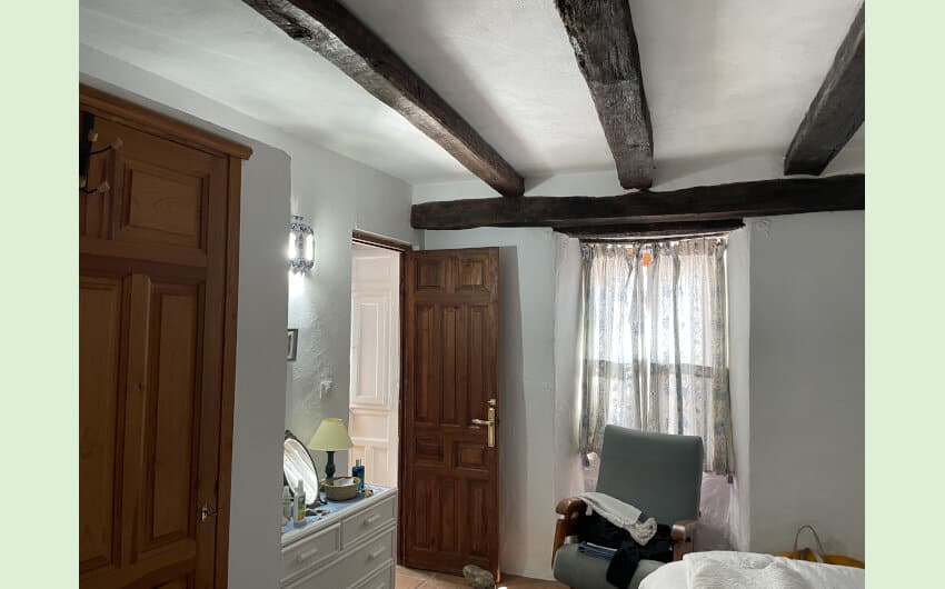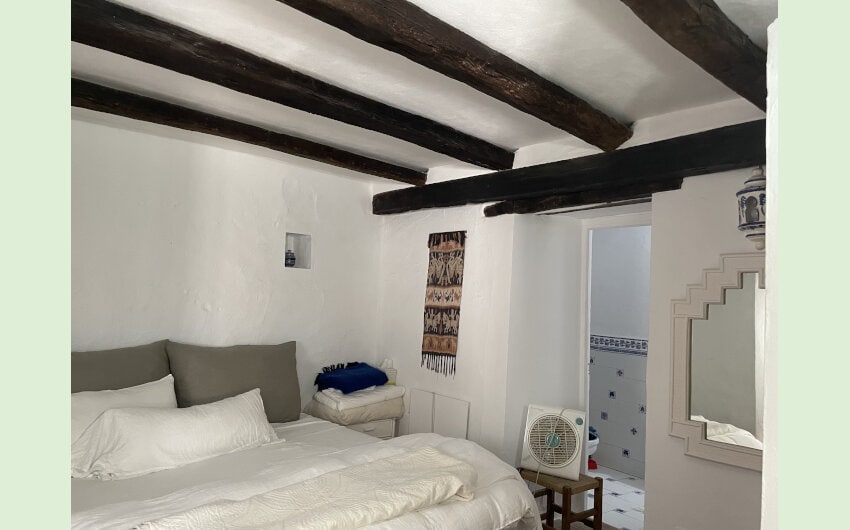 Precio reducido a 220.000 € desde 265.000 € Encantadora propiedad de 2 o 3 dormitorios y 2 baños en el corazón del pueblo alto. Características originales – suelos de barro, vigas de madera y rejas tradicionales. Abra la puerta principal y se encontrará con un diseño de planta abierta: habitacion principal a la izquierda con su baño ensuite, aseo por otro lado del pasillo, sala de estar, segunda habitacion con su ensuite hasta el patio que da a otra terraza baja y a la piscina de unos 6 x 3 m2. La piscina y zona chill llevan vistas maravillosas. La cocina y salon comedor se encuentren en planta primera y tambien consta de su terraza de chill con zona de comer con mesa y sillas. El salon tiene una chimenea grande y hermosa. Se encuentra en la zona alta de Jimena con vistas a los alcornocales parque natural y al Gibraltar.