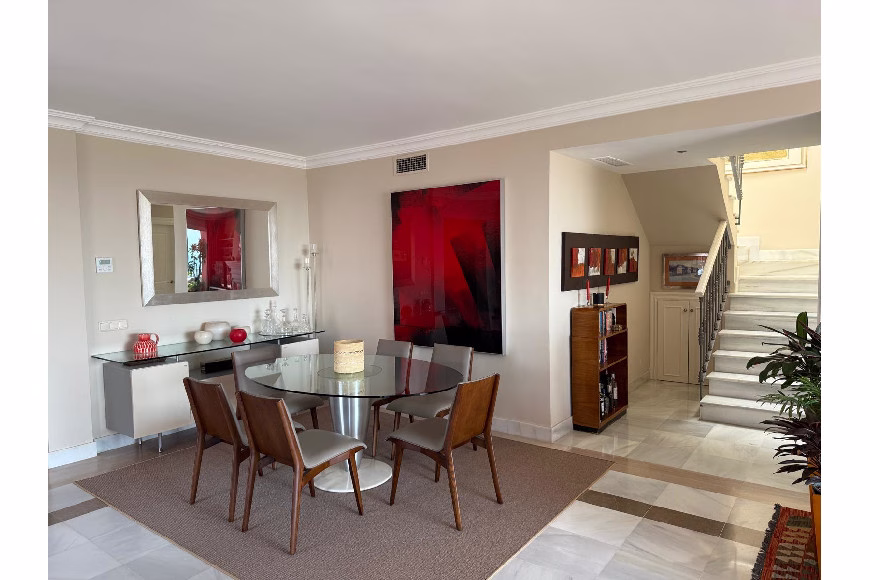 Situado en una ubicación exclusiva dentro de la prestigiosa urbanización Monte Halcones, cerca de Benahavís, este elegante ático dúplex de 3 dormitorios y 3 baños en suite, con aseo adicional, ofrece la combinación perfecta de lujo y tranquilidad. A unos 200 metros sobre el nivel del mar, la propiedad disfruta de una suave brisa marina que garantiza comodidad incluso durante los meses más calurosos del verano.