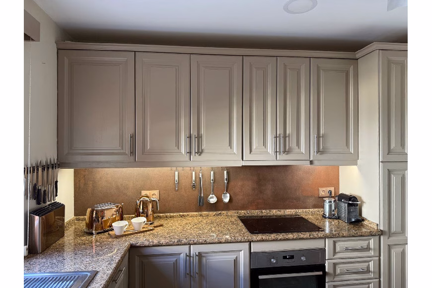 Como unidad final, este ático es uno de los pocos con escalera privada que proporciona acceso exclusivo a la propiedad. Se distribuye en dos niveles, con la espaciosa suite principal en la planta superior. El baño principal en suite es amplio (aprox. 20 m²) y cuenta con ducha de hidromasaje Hydra Spa, bañera independiente y lavabos dobles. También hay una terraza dedicada que sirve como lavadero, equipada con lavadora y secadora.