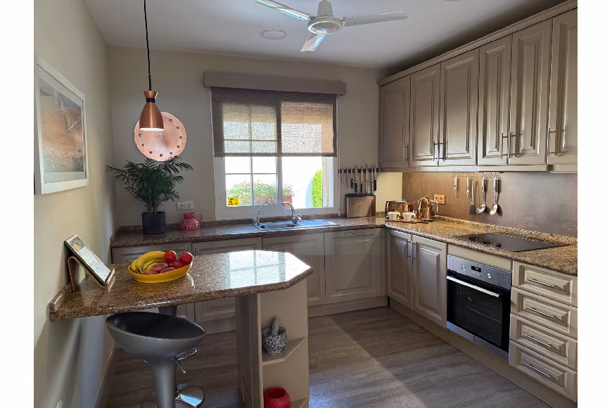 La cocina, totalmente equipada, está equipada con frigorífico-congelador, lavavajillas integrado, placa y horno eléctricos, y un fregadero de acero inoxidable. Las amplias encimeras de granito ofrecen amplio espacio de trabajo, y la barra de desayuno ofrece un espacio informal para comer. Dispone de una amplia gama de armarios para mayor espacio de almacenamiento.