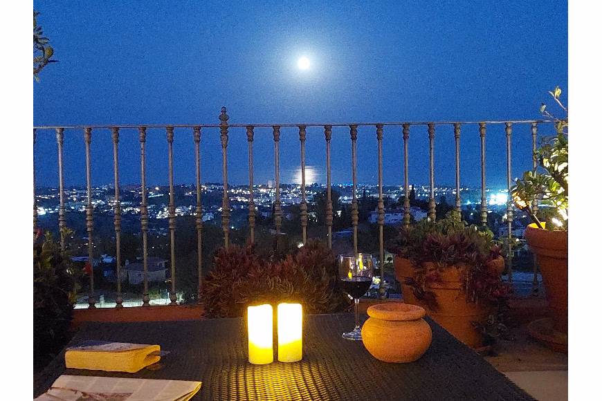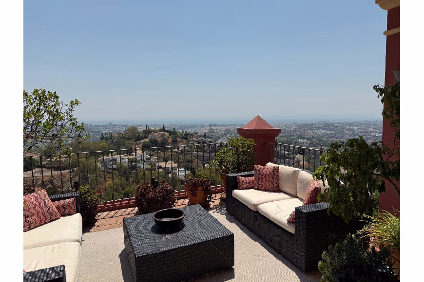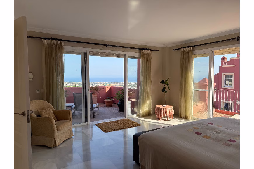 Este ático con orientación sur ofrece inigualables vistas panorámicas de 180 grados, que abarcan desde Marbella y la emblemática montaña de La Concha, hasta San Pedro, Guadalmina y Atalaya. En días despejados, el resplandeciente mar Mediterráneo brilla en la distancia, con la costa marroquí visible en el horizonte. Los amaneceres y las vistas de la luna llena son realmente inolvidables.