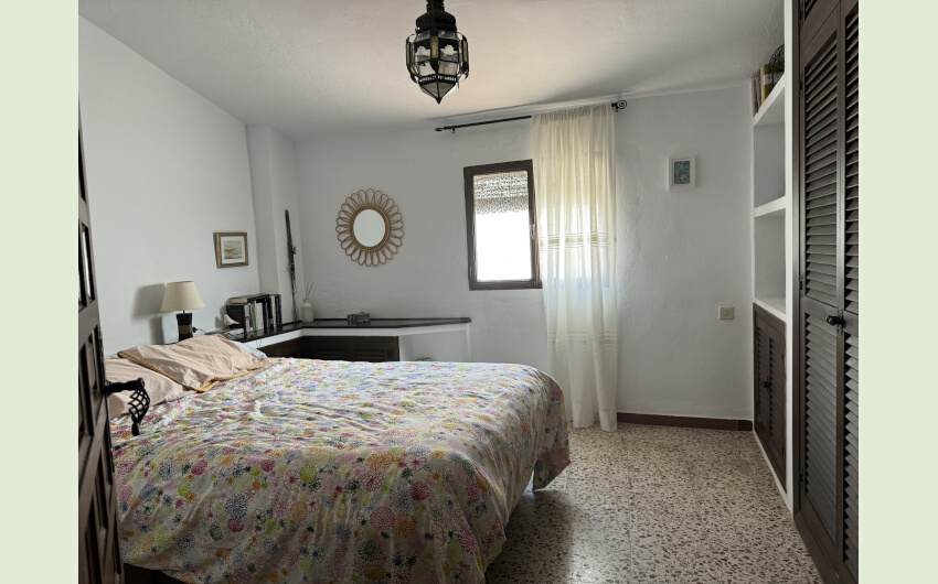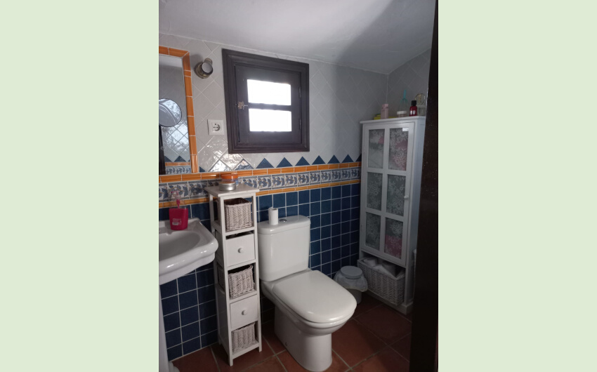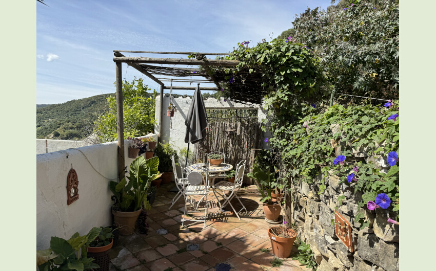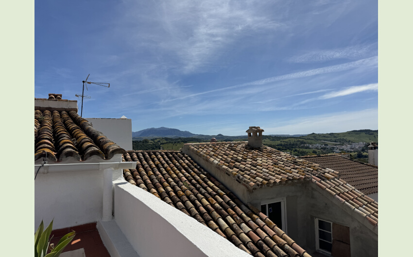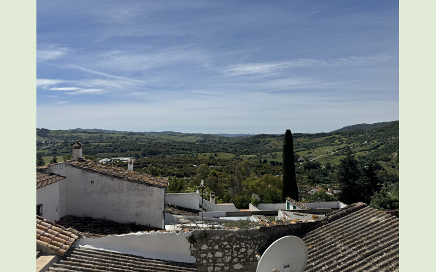 This bright and cheerful 2 bed 1 bath property is in walking distance to the restaurants and main square in Jimena de la Frontera. On entering the home there are 2 small rooms next to each other that could be combined to create a bigger room, for example a bedroom. Then you find the light and airy kitchen and sitting room which lead to the patio and upstairs terrace accessible via the external staircase. The views from up here are exceptional.