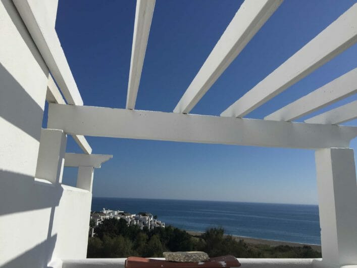 The property is in a great location, Casares de Bahia, inviting people to explore the famous white villages above by car and enjoy the beautiful sandy beaches and beach bars (chiringuitos) that are less than ten minutes away on foot. In the evenings there is no need for holiday makers to drink and drive. The urbanisation is near a foot bridge across the A7 and then the beach bars are open into the very early hours of the morning in high season. One of these beach bars is now open all year and is always popular for its fish fare.