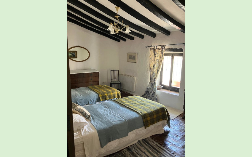 This charming property is in a lovely pedestrian street in Jimena de la Frontera. As you walk through the double wrought iron gates and enter the passage way you know you are in for a treat. There is a store room on the left and a lovely bedroom on the right then you walk into the wide sitting room. Stairs are to your left and the kitchen leads off from the sitting room. There is a wood burner and a fireplace in this open planned living space. The ceilings are originals with wooden beams and oodles of character and there are lovely traditional terracotta tiles. Some wonderful French Windows open up to the patio. The generous sized patio has a bijou plunge pool / water feature in the corner and a sense of an Elizabethan garden permeates. To the right of the patio is a room currently used as a pantry and laundry area that could be added to an adjoining room at the back of the sitting room to offer a lovely 4th bedroom. On this floor there is a small bathroom for guests. Upstairs are a further 2 bedrooms, one which has additional access to the large terrace almost the size of the patio. There is another door off the passage way so access is without disturbing anyone. The second bathroom is also on this level and has a lovely colonial style bath tub and the room is very large for today’s standards. It seems almost sacrilege to suggest it, but it could be repurposed and the space used for two en-suites. The plot size is 126 m2 and the built area is 178 m2.
