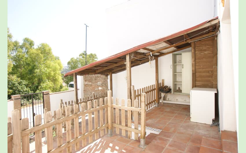 Priced at only 145,000 euros. Jimena de la Frontera 2 bed 2 bath town house set on 2 storeys in the centre of town with dedicated parking. Each floor is almost 60 m2 and the patio is 30 m2. Each of the two bedrooms upstairs has its own staircase. Downstairs, this garden area leads to the dedicated parking outside the back gate. In many ways this is a back to front house; coming and going via the back gate where the car is parked. There is a front door, along a narrow hallway and has a Hobbits or Middle Earth feel to it. This passage way could in essence be a store room rather like the cupboard under the stairs if only the back door was used. The sitting room and kitchen open out onto the patio, making entertainment a breeze. As mentioned, both bedrooms are upstairs, one with an ensuite and the second one shares the downstairs bathroom. Both bedrooms being separated and accessed via their own private staircases are very private.